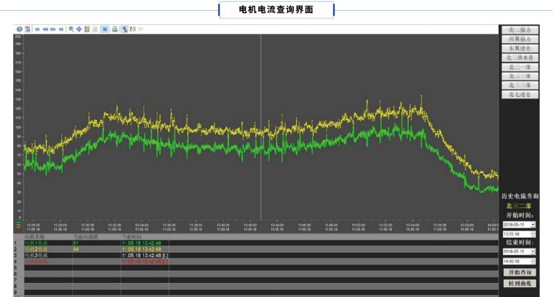 (4)在上位機上,可以選擇時間段查詢選定設備的電機電流及電機溫度,數(shù)據(jù)以曲線視圖形式顯示,便于管理者與設定值比較,快速判斷電機近期的運行狀態(tài)。曲線可以導出,格式為Microsoft OneNote。