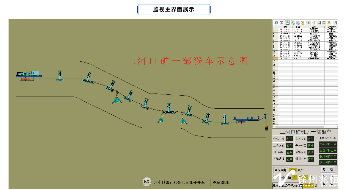 (7)每100米設(shè)置拉線急停保護,需要手動復(fù)位后才能啟車。監(jiān)控計算機能實時顯示各個保護的動作狀態(tài)與保護的位置。